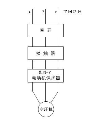 在安裝時,先有三個主回路線進空開,從空開出來后接接觸器,從接觸器出來后接電動機保護器,從保護器出來后接空壓機。
